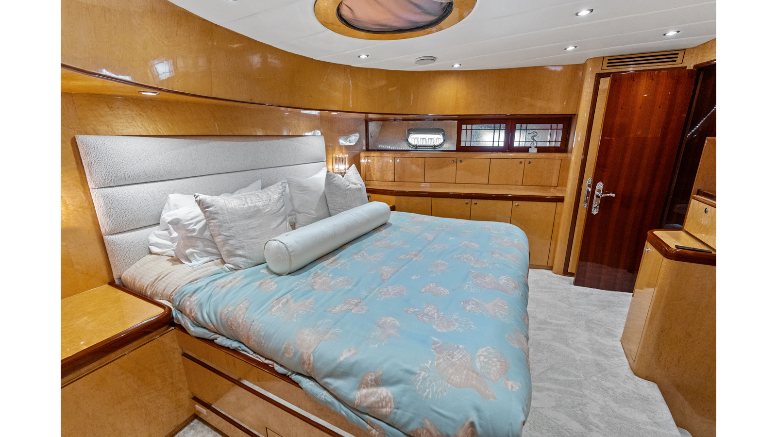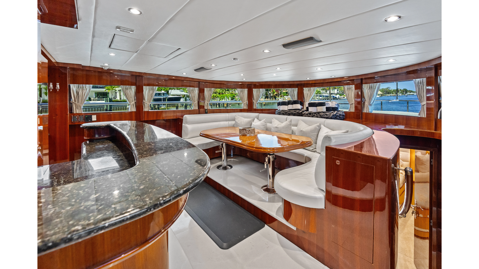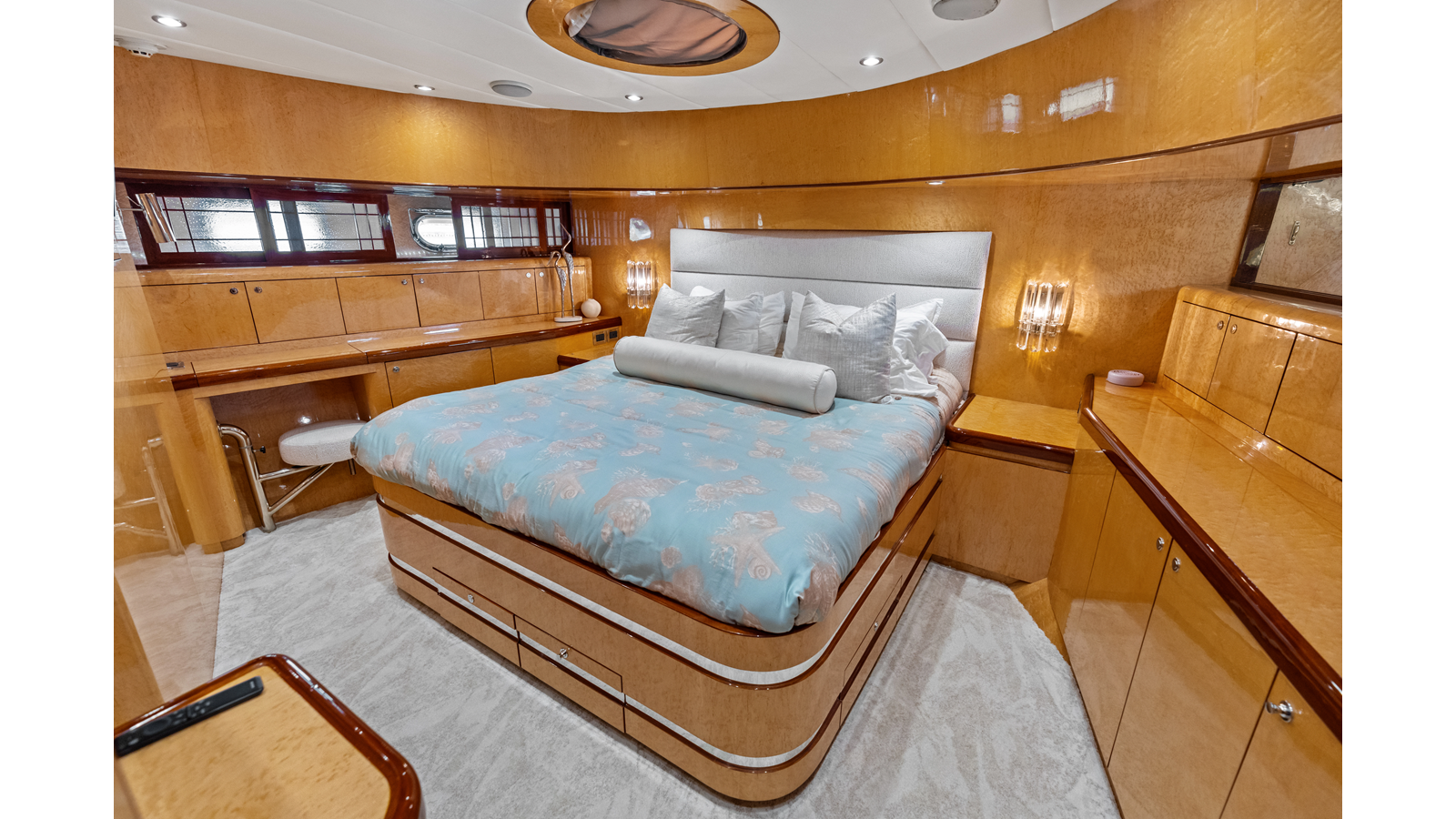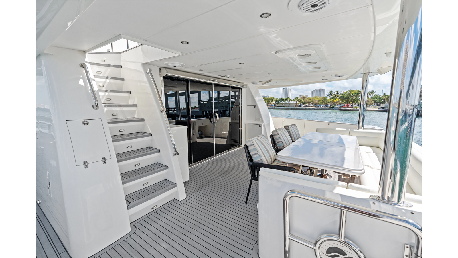 As you walk through the electric stainless doors, the interior volume truly stands out, thanks to her 23’6" beam. She has a substantially wider beam than most yachts in her class—just a few inches shy of a 112′ Westport—which sets this 87 Johnson apart from others in this size range.