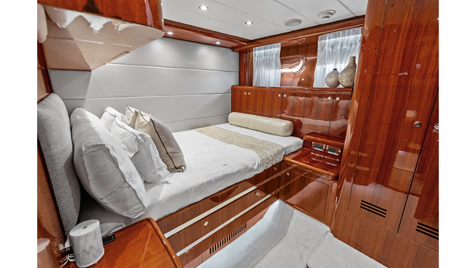 If you’re seriously considering yachts up to 112 feet, this 87 Johnson is a pleasant surprise—and this particular vessel will not disappoint in terms of condition. She comfortably accommodates four couples.