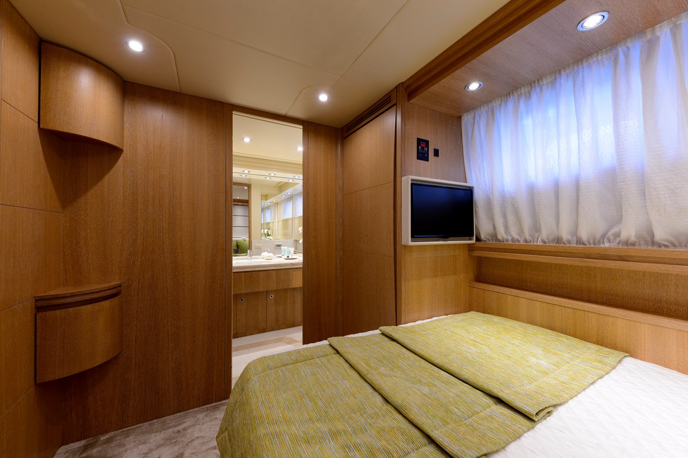 Accommodation is arranged for up to 10 guests in 5 well-appointed cabins, including a spacious full-beam master suite and four additional guest staterooms, all designed with a refined and welcoming atmosphere.
