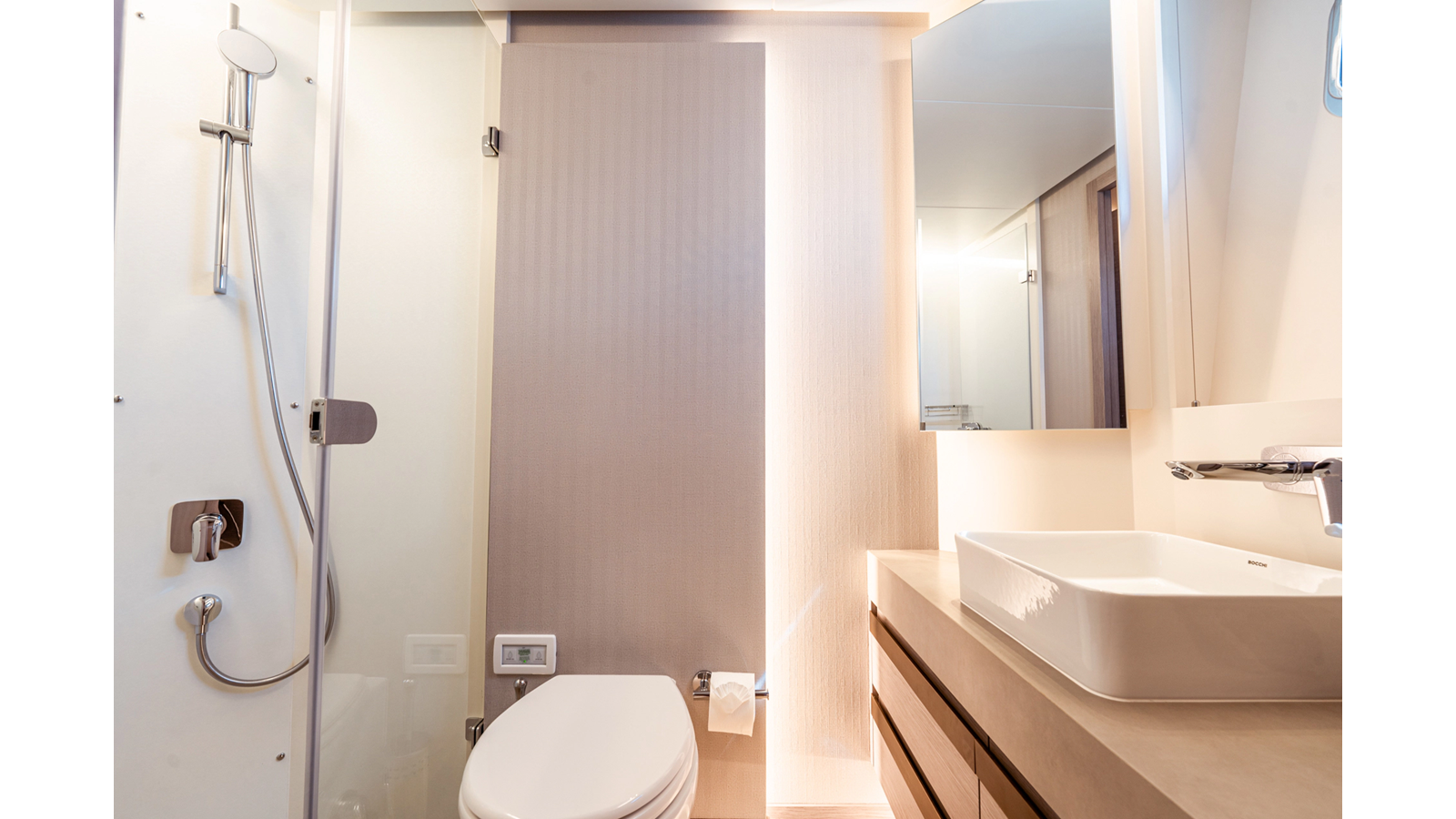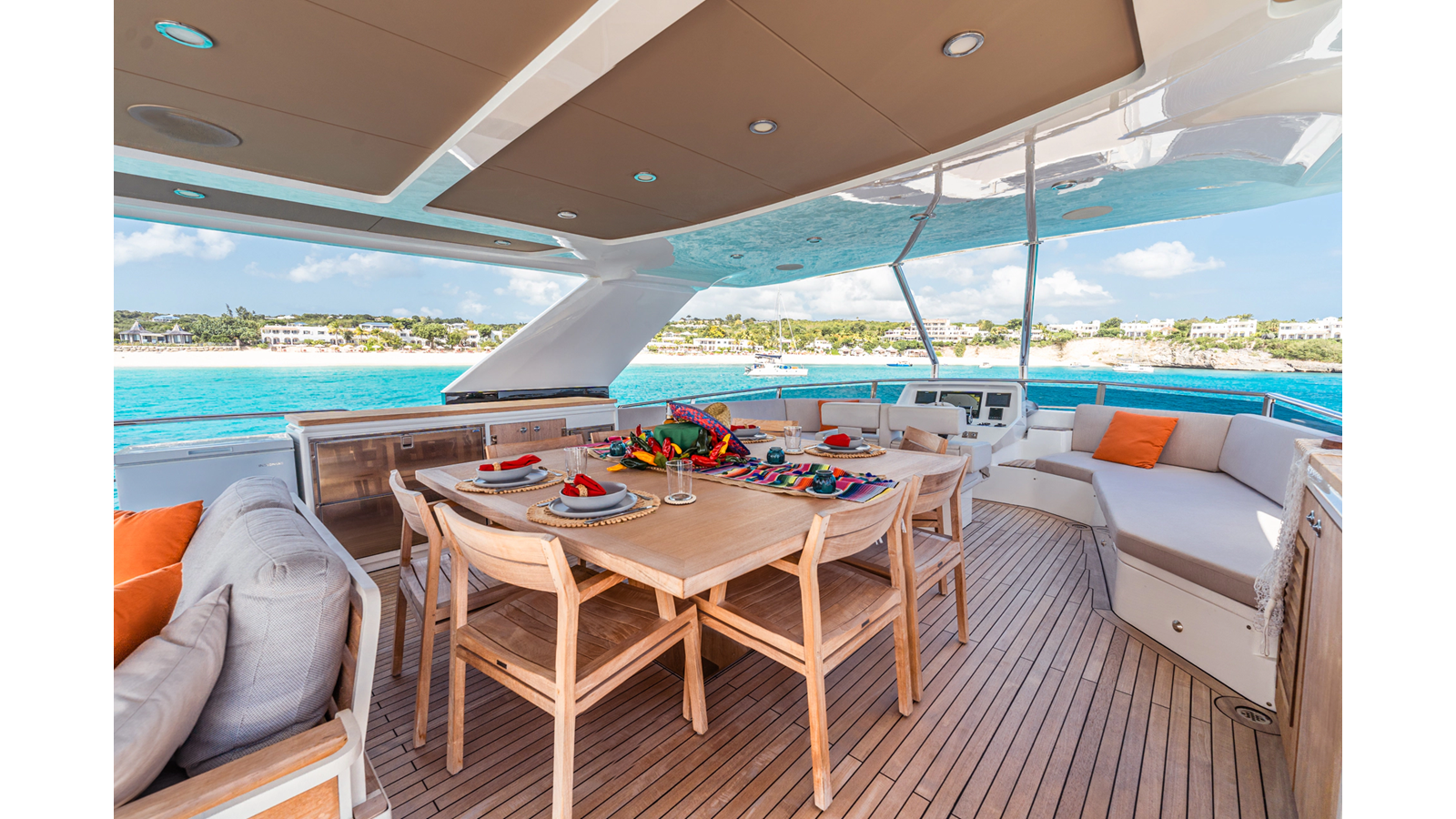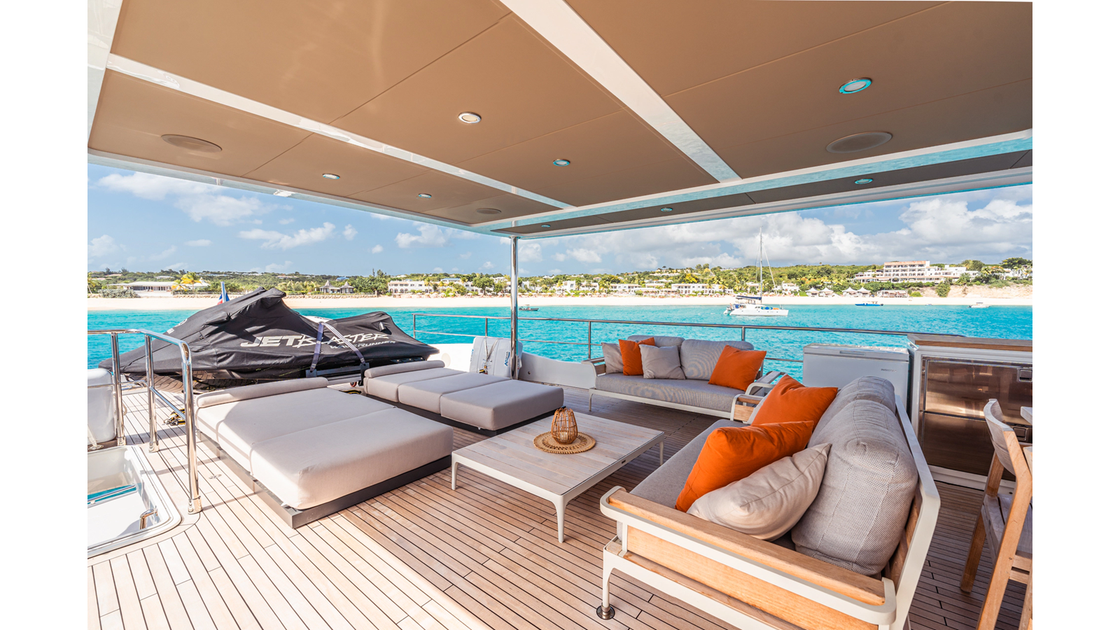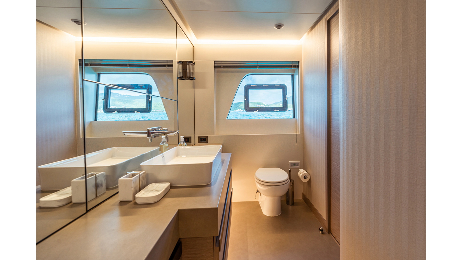 Onboard comfort is further enhanced by the latest-generation electric fin stabilization system, providing exceptional stability both underway and at anchor. The extended flybridge hardtop is equipped with a comprehensive solar energy package and an impressive 80 kW lithium-ion battery bank, forming the Silent Package that allows for silent overnight operation without generator use.