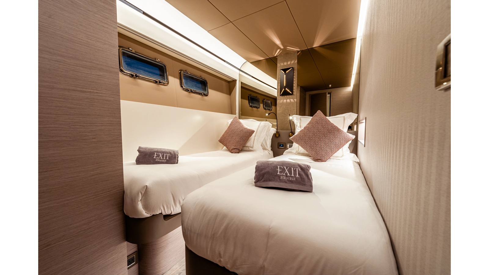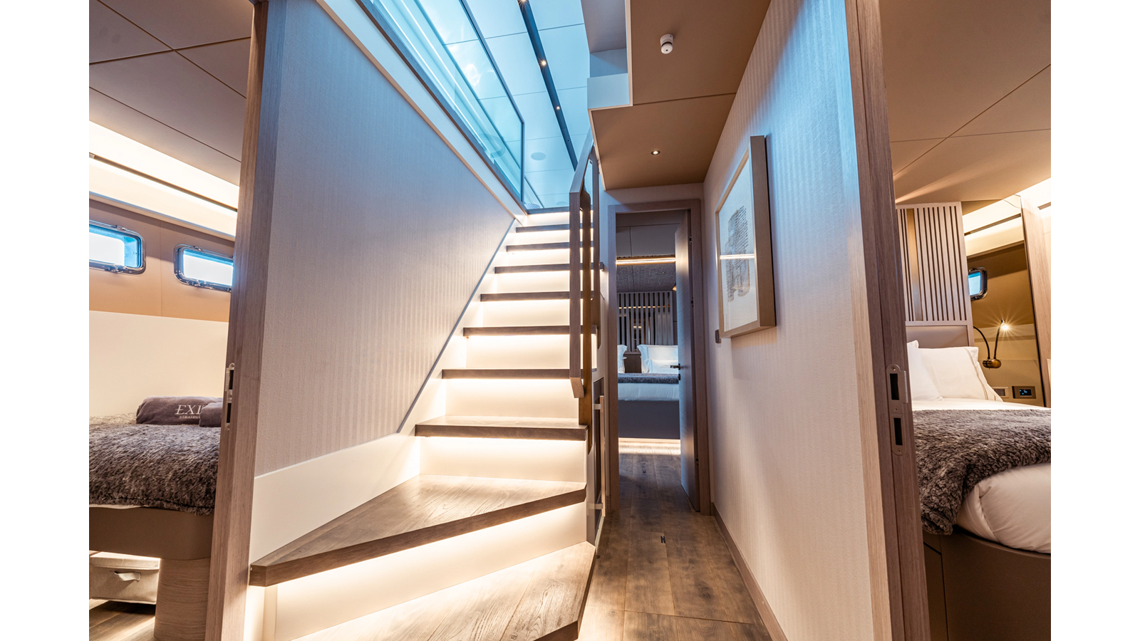 The 2023 Numarine 26XP EXIT STRATEGY is a purpose-built expedition-style yacht accommodating up to eight guests in four spacious staterooms, with additional accommodations for four crew in two dedicated cabins.