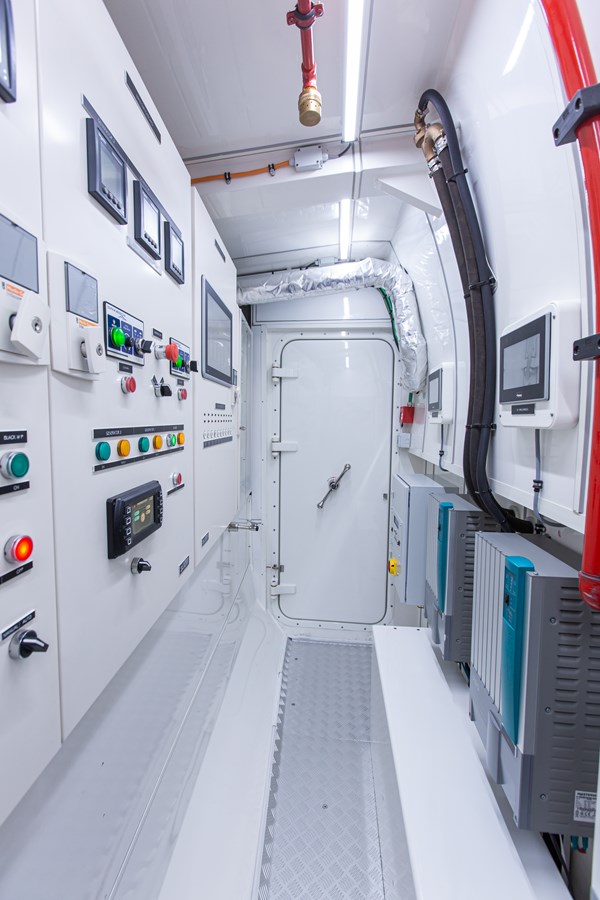 The yacht is fitted with a torpedo-style T-bulb keel which was carefully designed using Computational Fluid Dynamics (CFD) and positioned slightly further aft so that it relates to the mast step position and the machinery space positioned slightly further aft in this yacht.