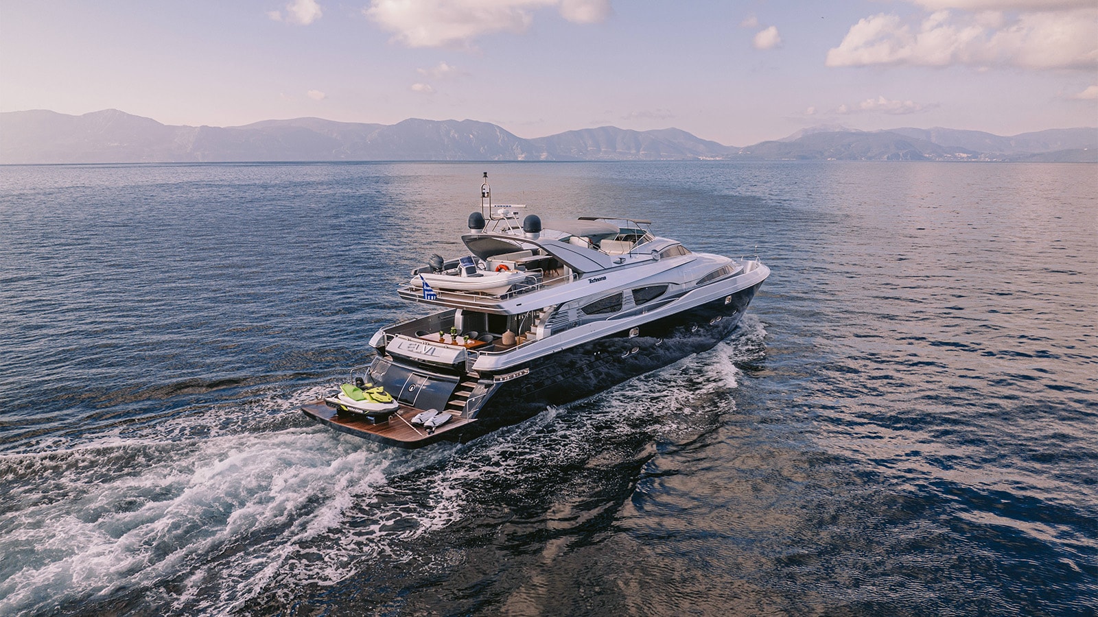ELVI boasts a spacious aft swimming platform, providing easy access to the water, as well as a unique array of water toys, offering endless opportunities for adventure and recreation for guests of all ages and preferences.