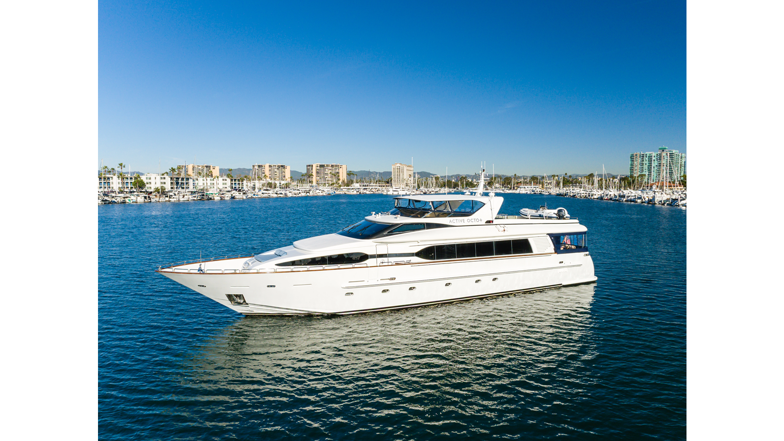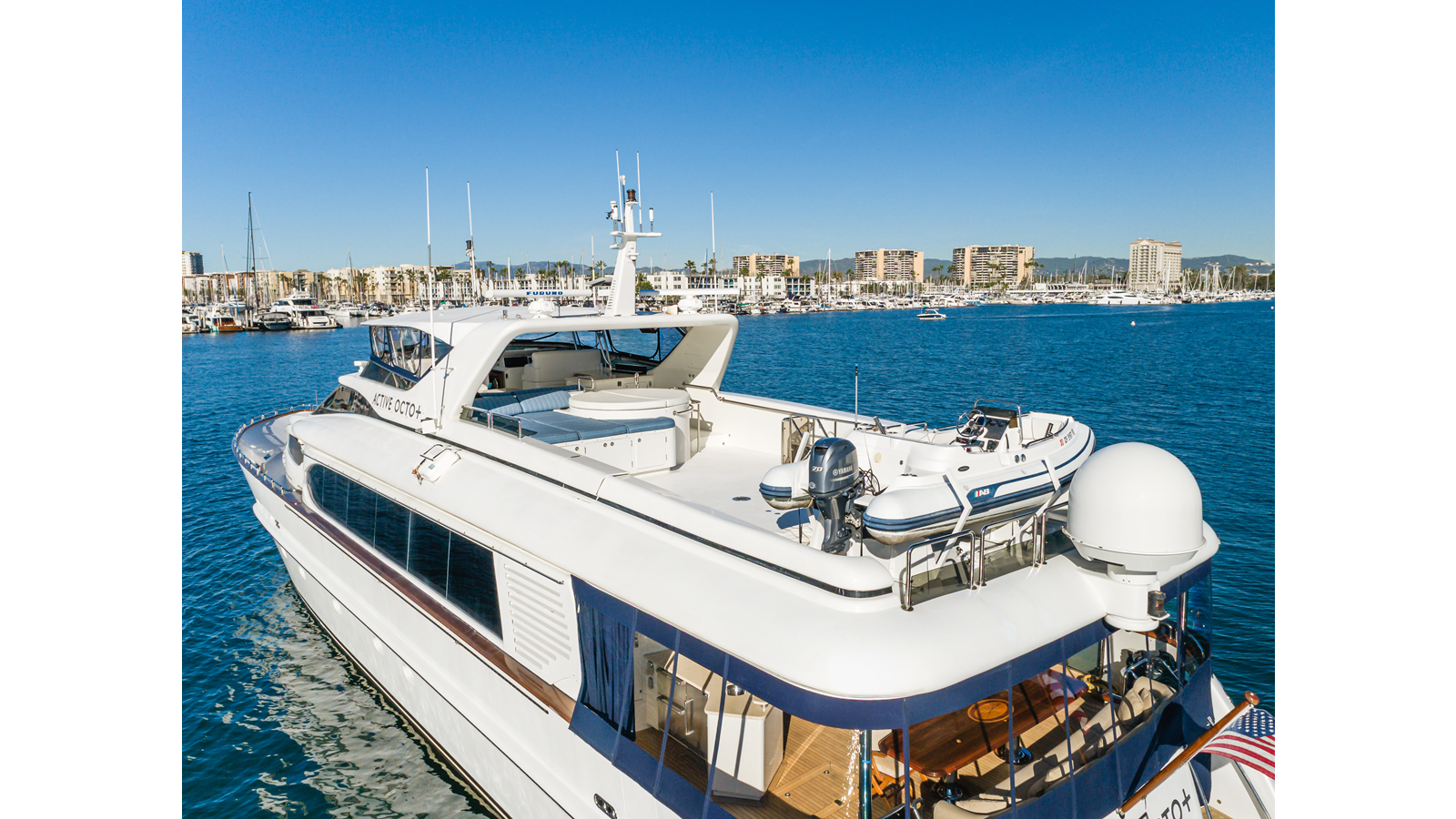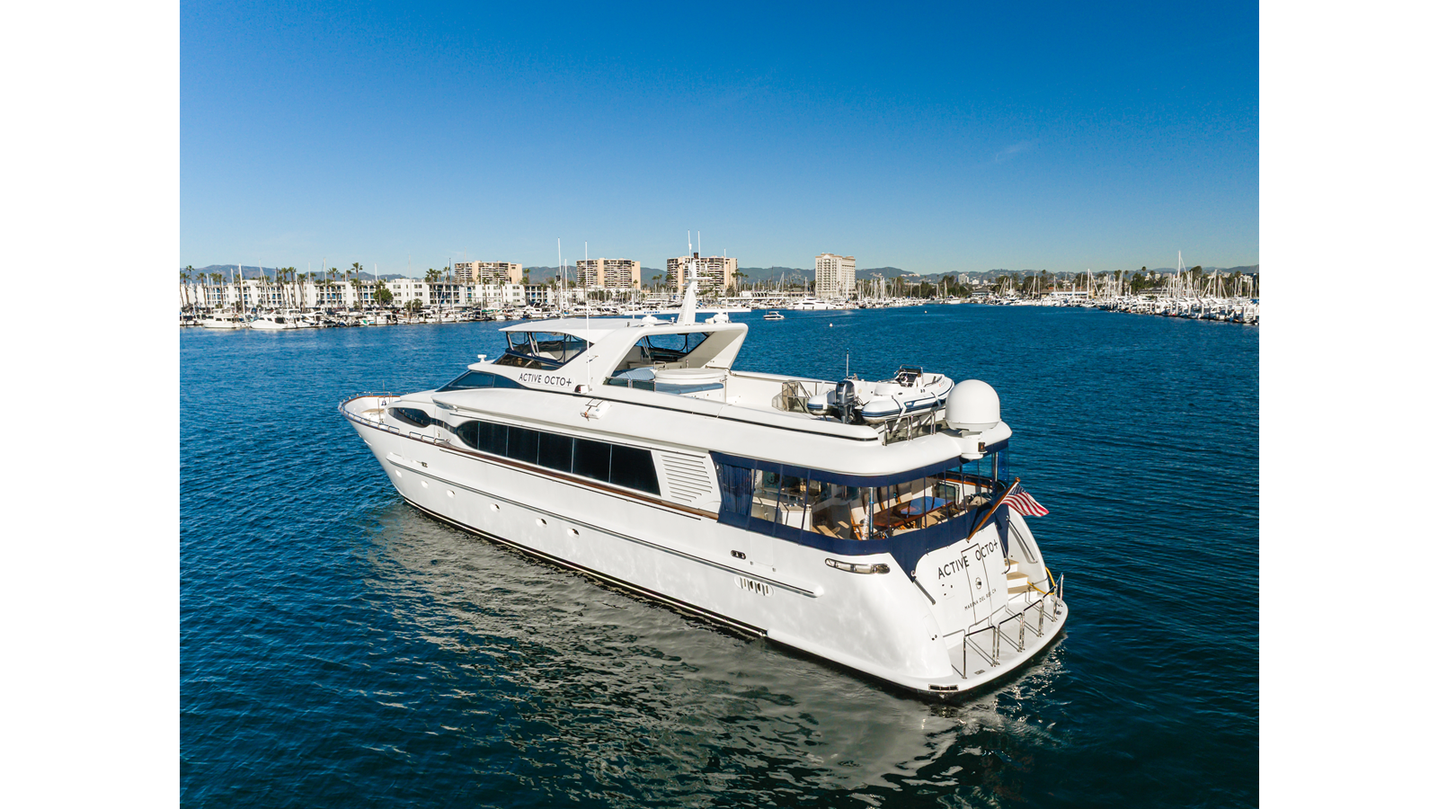 ACTIVE OCTO is a standout 104’ Destiny motor yacht, blending exceptional volume, renowned pedigree, and superior build quality. Designed by Evan K. Marshall, she offers timeless elegance with modern sophistication, highlighted by her wide-body design that maximizes interior and exterior living spaces.