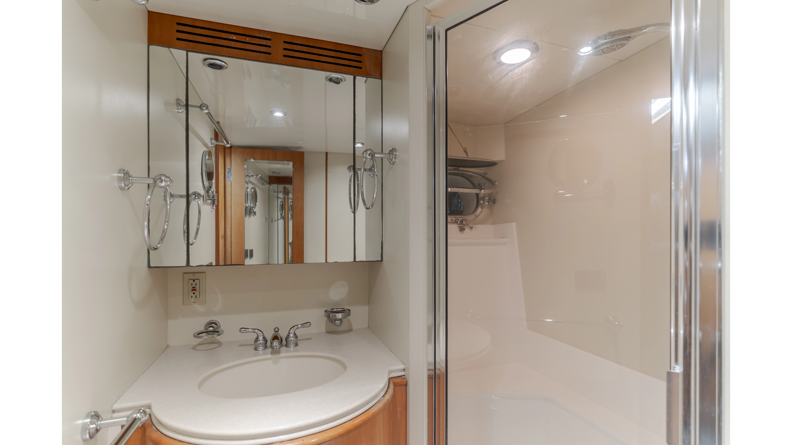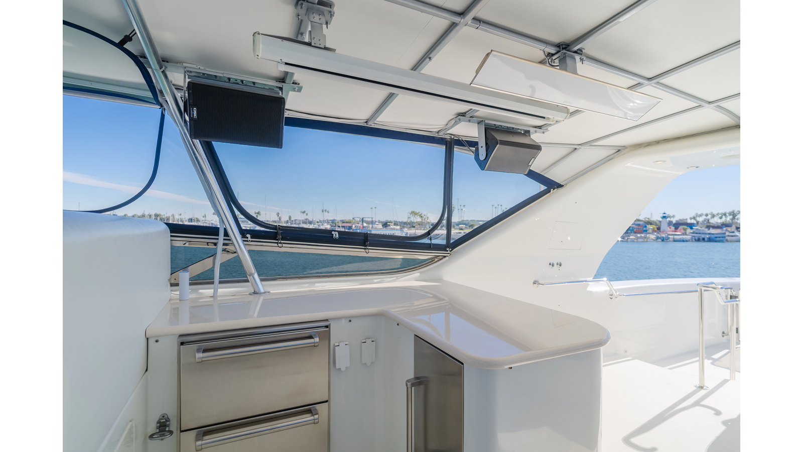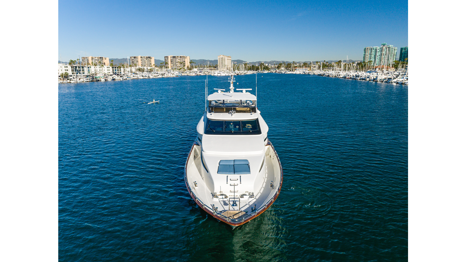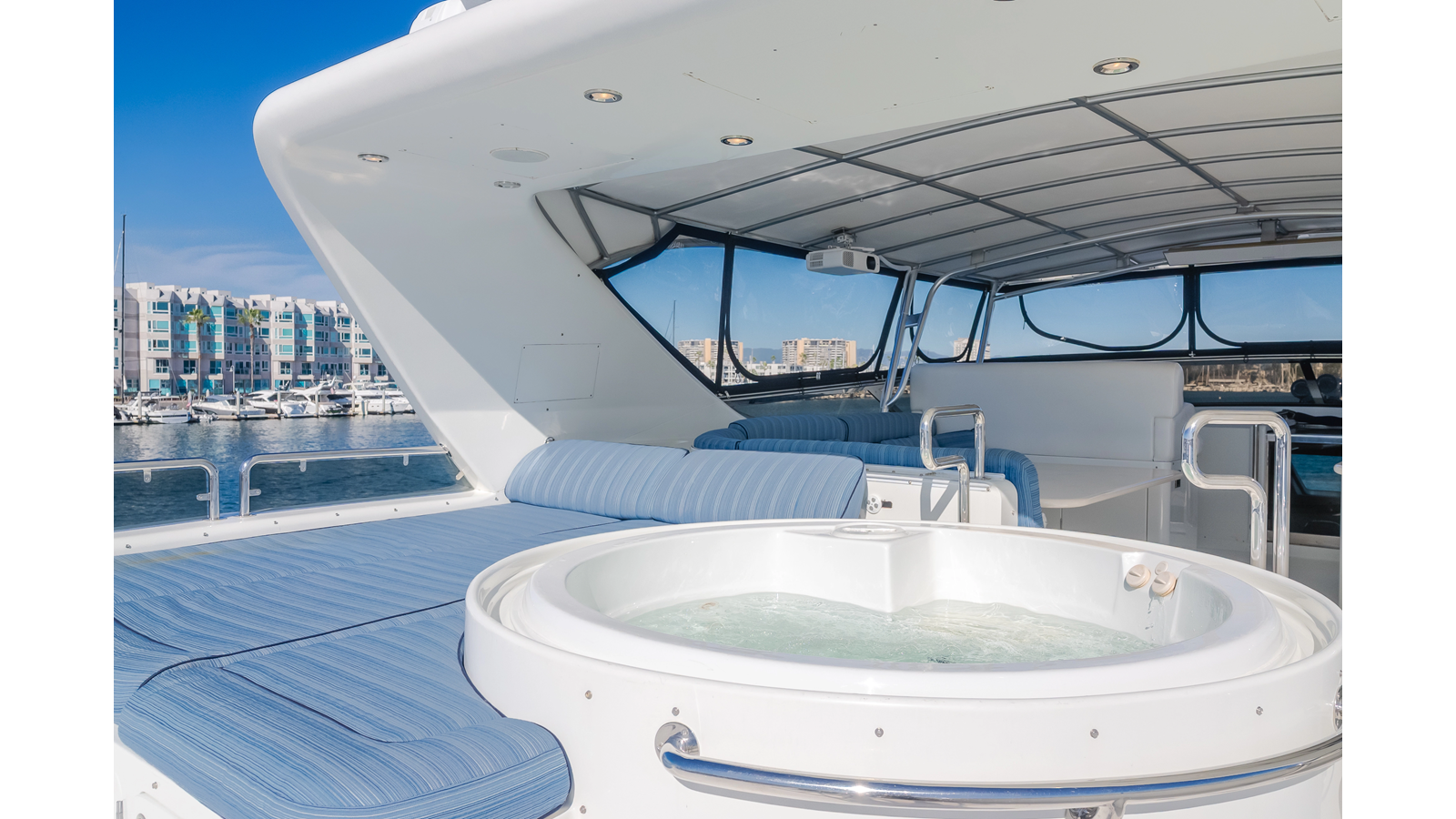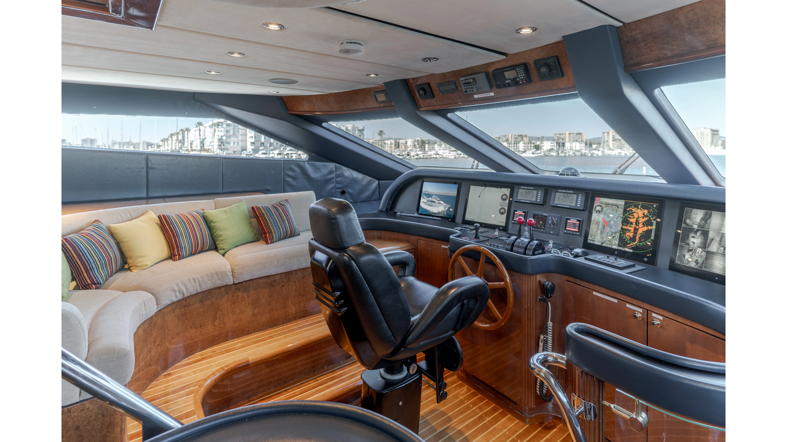 Accommodations for up to eight guests include four beautifully appointed staterooms. The full-beam, bi-level master suite on the main deck provides exceptional privacy, complemented by a second impressive full-beam master on the lower deck with his-and-hers baths. Two additional guest staterooms (one double, one twin) each feature en-suite bathrooms.