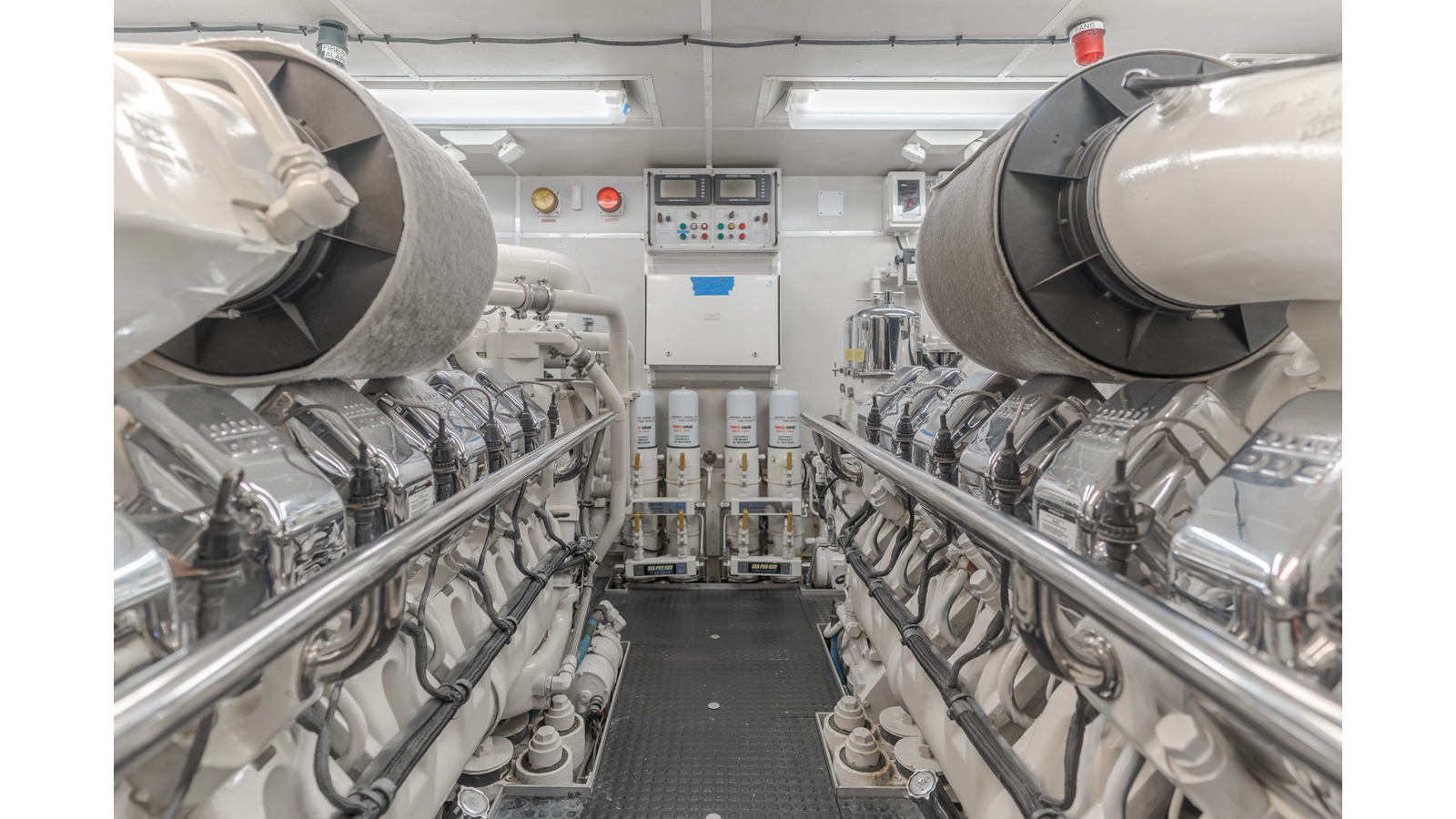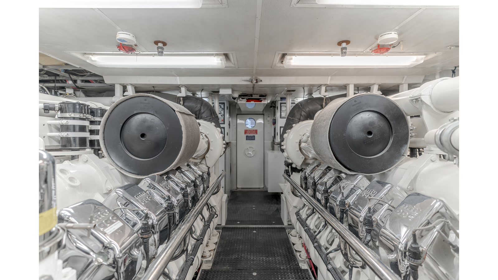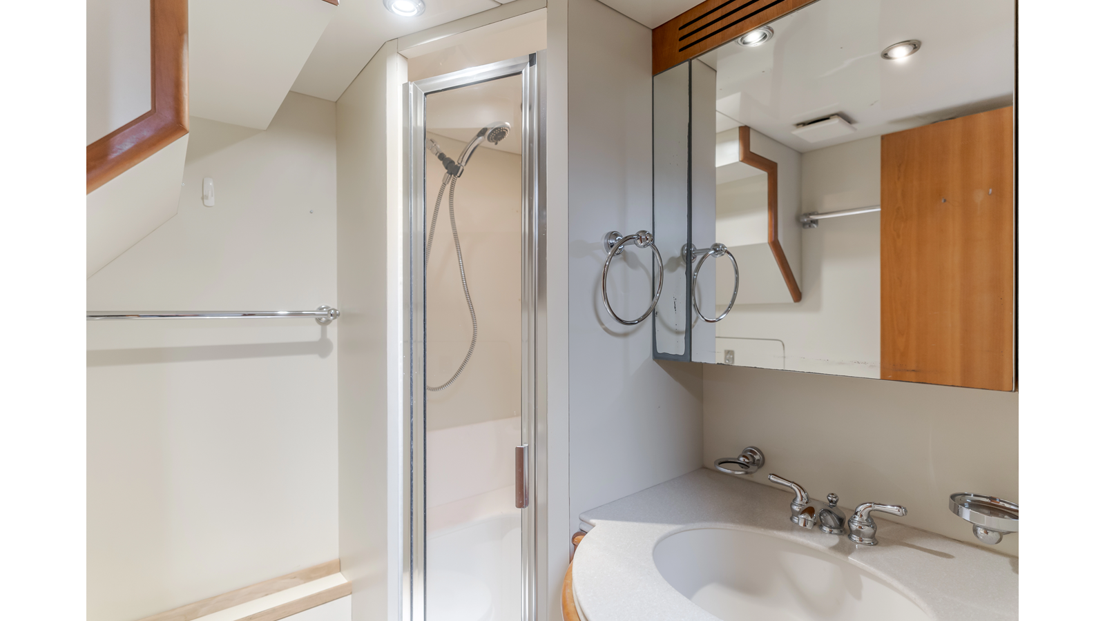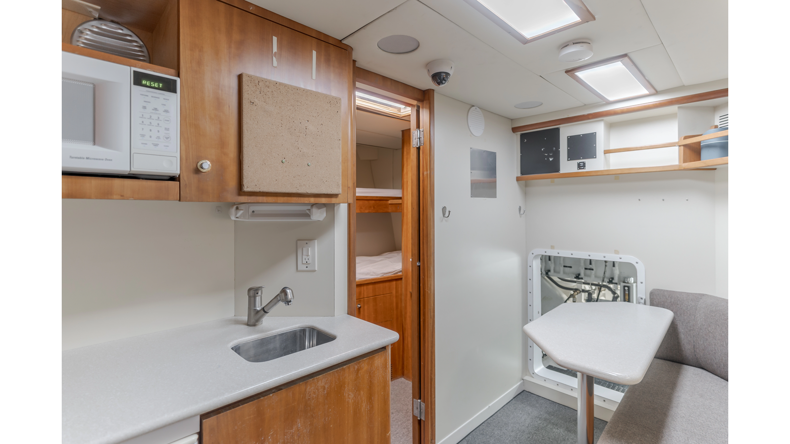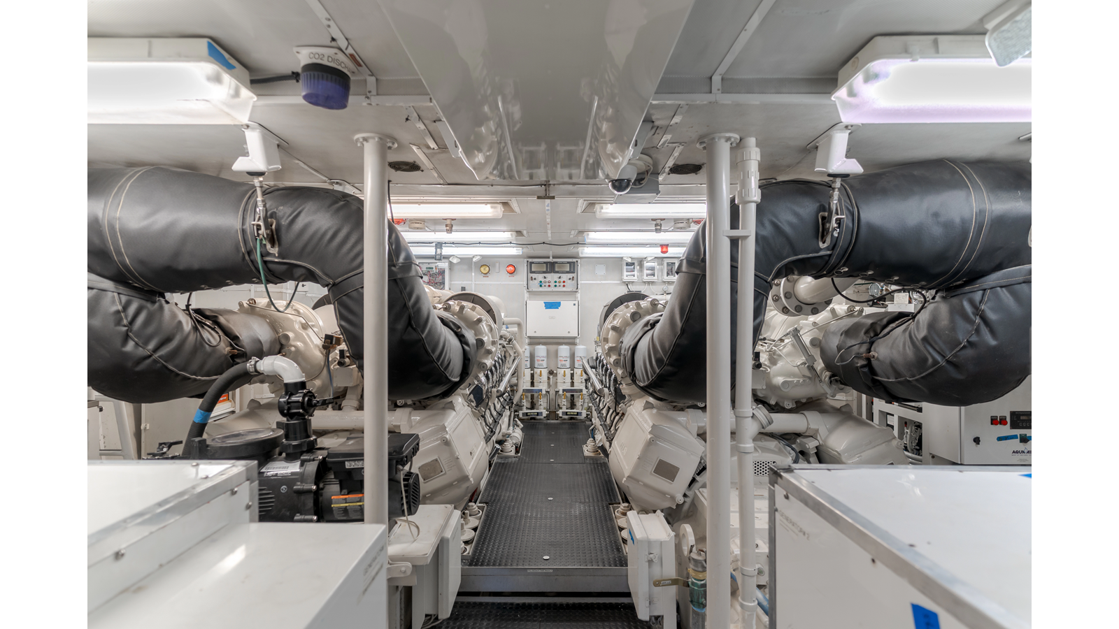 Accommodations for up to eight guests include four beautifully appointed staterooms. The full-beam, bi-level master suite on the main deck provides exceptional privacy, complemented by a second impressive full-beam master on the lower deck with his-and-hers baths. Two additional guest staterooms (one double, one twin) each feature en-suite bathrooms.