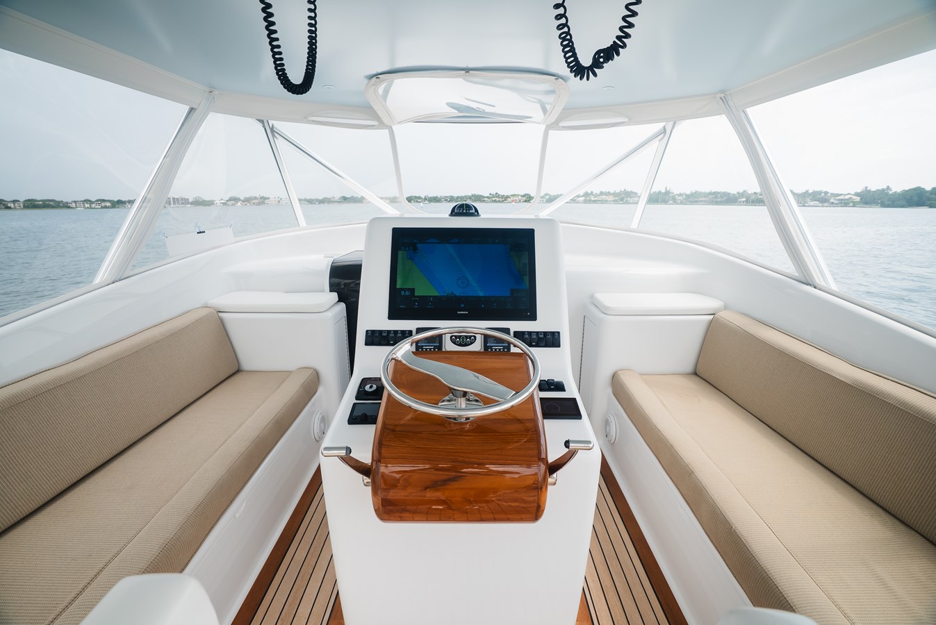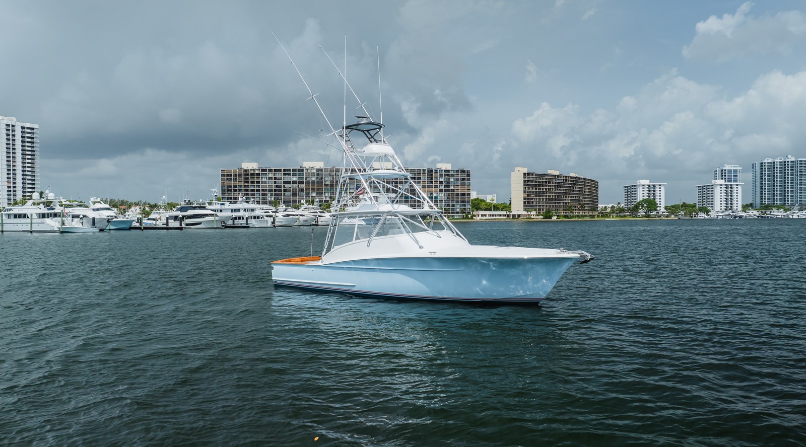 ATTITUDES, the 42 Daniels Boatworks express sportfish is hitting the market for the first time. Built by a very experienced owner whom had two previous Spencer yachts, Kurt Daniels was chosen to build his new express. Built in the mecca of custom boatbuilding that is Wanchese, NC, the 42 Daniels ATTITUDES exemplifies all that you would expect from this region. Ride, performance, fishability and beauty. There is nothing quite like a custom North Carolina sportfish. Equipped with straight shaft Cummins QSM11 715HP diesels and a Steve French design, she cruises at 30 knots(65% load) burning only 42 GPH and a top speed of 38 knots. This original owner has a new Daniels under construction and this 42 Express is ready to be sold. Always maintained to an extremely high standard with a full time Captain, almost unheard of for a 42′ boat. It is not untrue to describe ATTITUDES as being in near bristol condition.