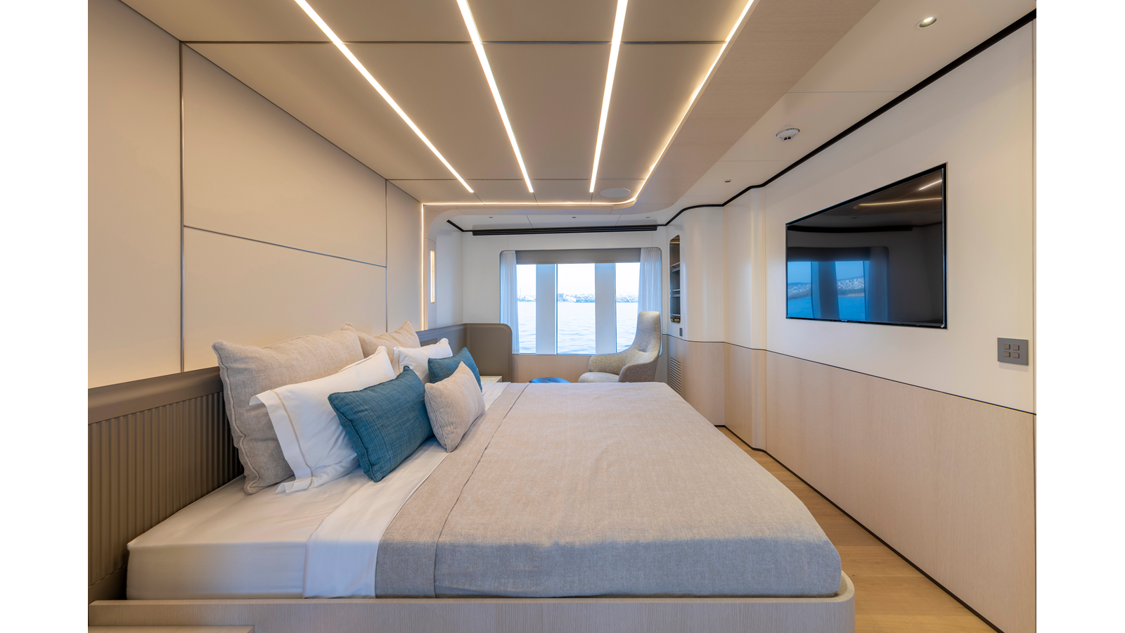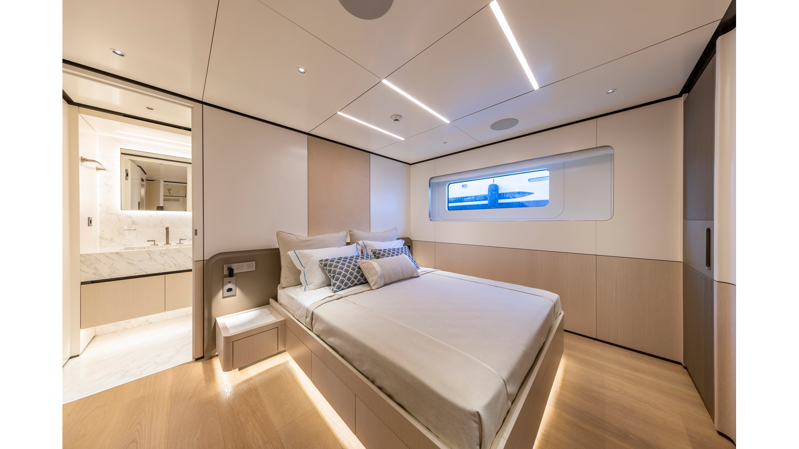 She sleeps 10 guests in 5 staterooms including a spacious main deck master. At 299GRT she is a large volume 35m but extremely capable and purposely built for blue water cruising.