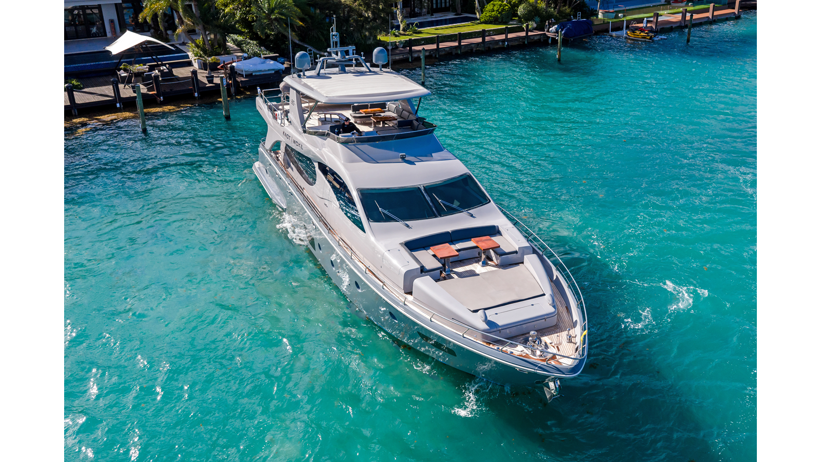 Knot Woke is a 2009 Azimut 85 that has undergone an extensive refit, with over $1M invested to bring her to a fresh, modern standard. During her time in the yard, she received new exterior paint, new teak decking, updated cushions, new salon flooring, as well as new A/C chillers and converters, along with numerous additional upgrades throughout.